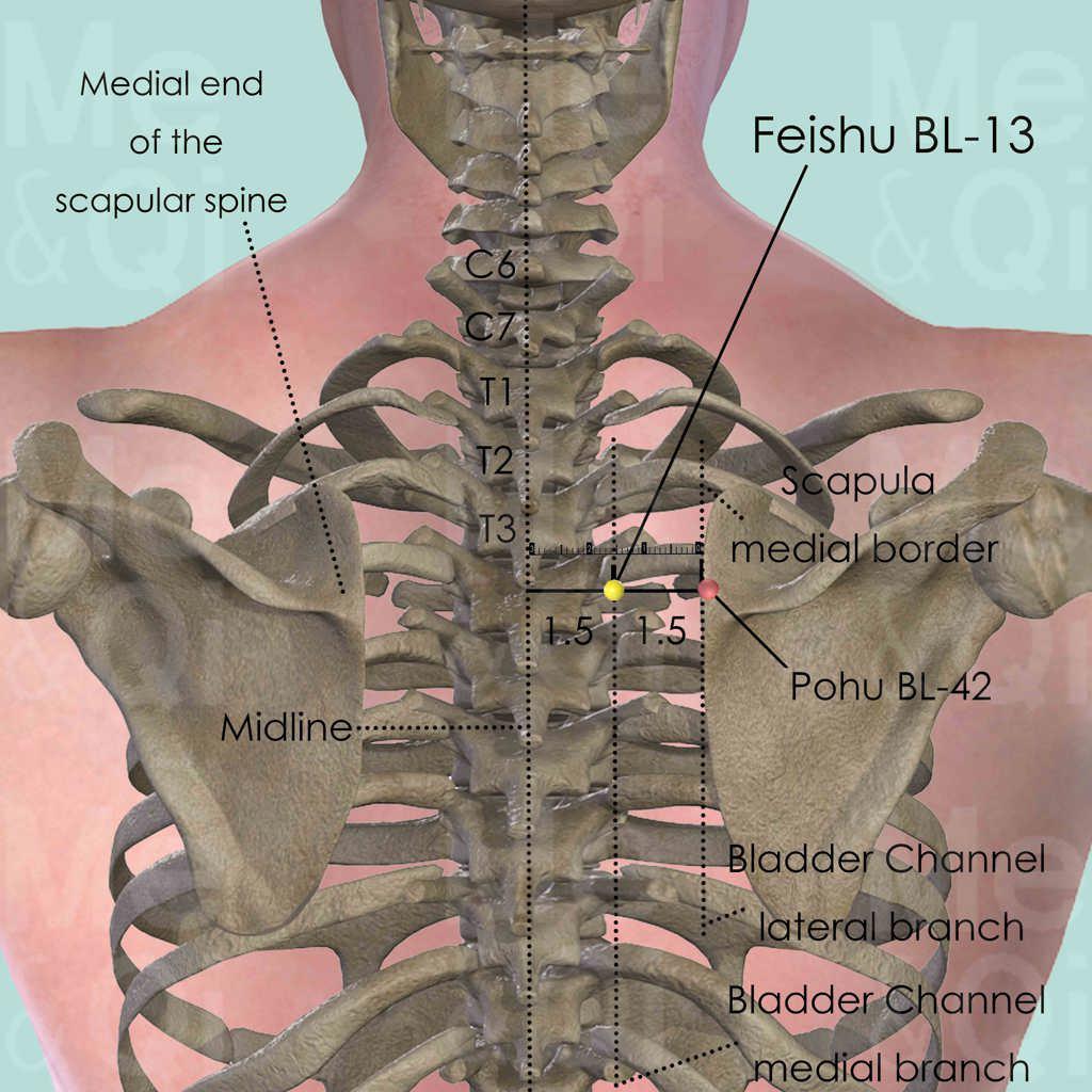 As the Back Transporting point for the Lungs, Feishu BL-13 is a very important point for Lung patterns of various Exterior and Interior origins.
