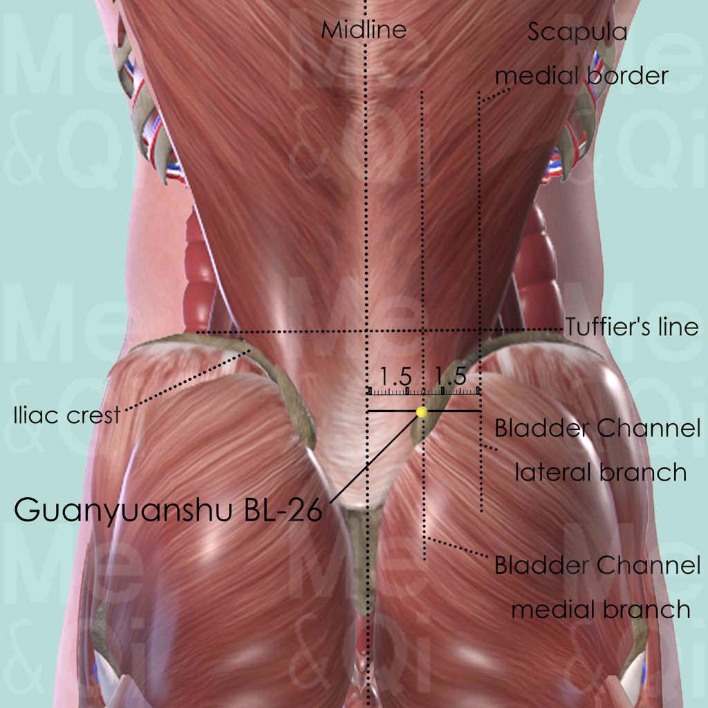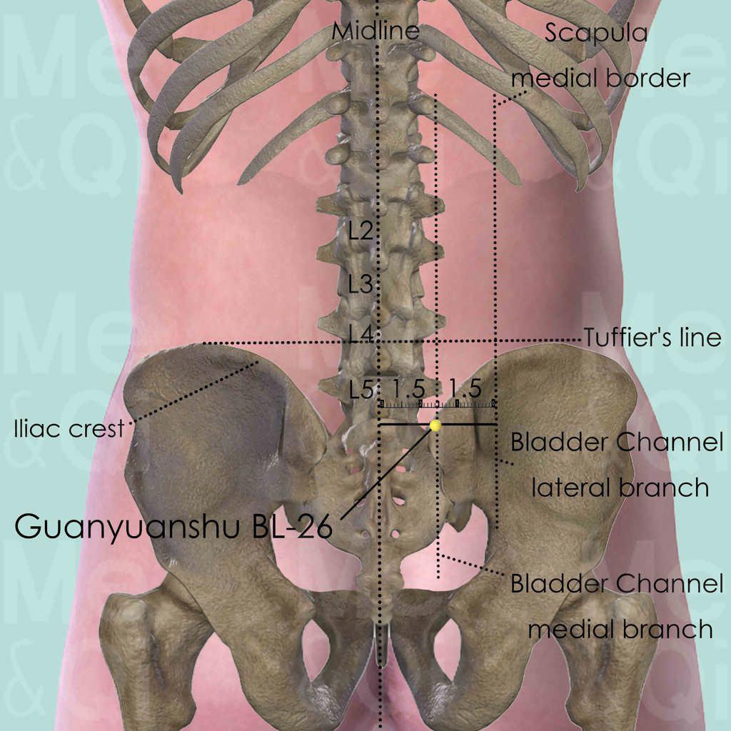 BL-26 also invigorates Qi and Blood in the Lower Burner, thus it eases pain, distension and masses in the abdomen. It also benefits the urination.
