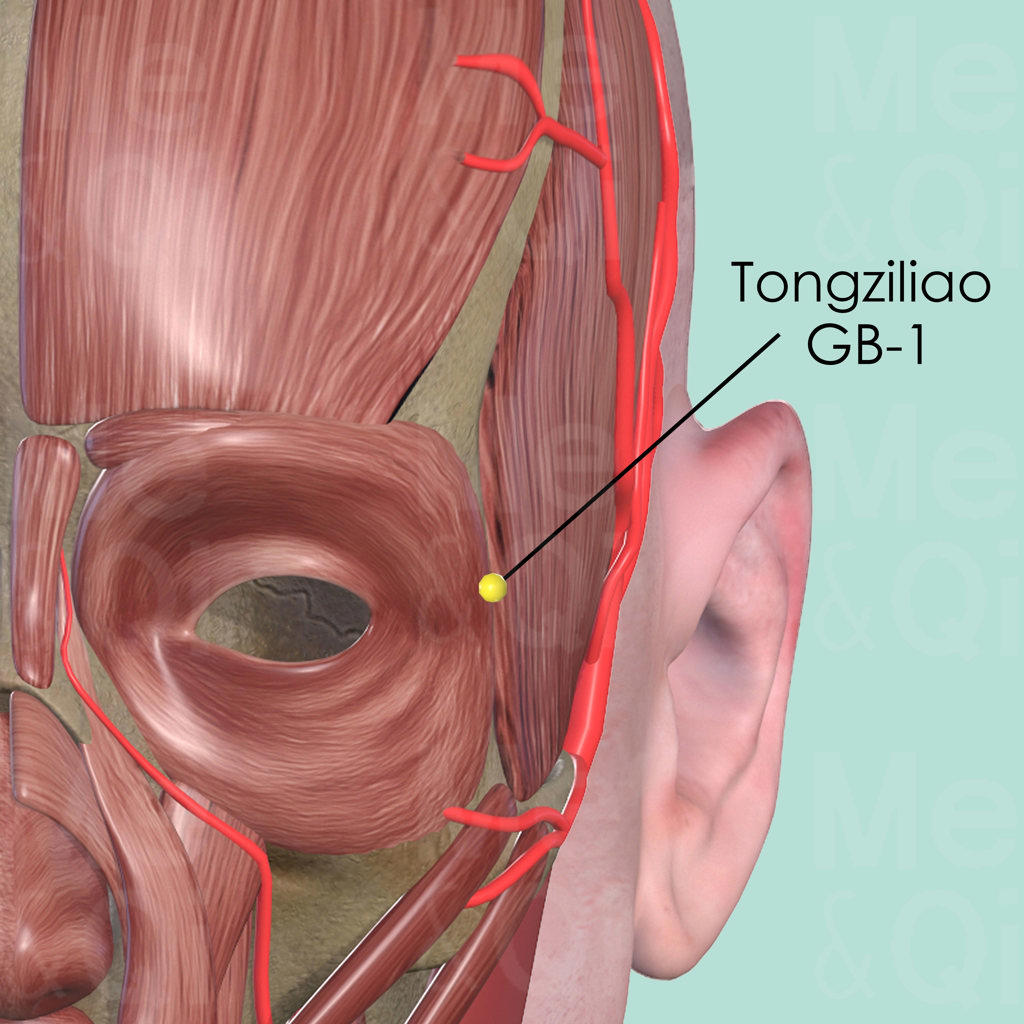 As an Eye System point, Tongziliao GB-1 is an important local point and is widely used for many eye related disorders, especially when caused by Heat from Exterior or Interior Wind.