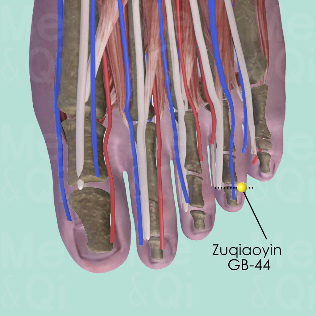 Zuqiaoyin GB-44 is widely used for subduing Liver Yang, in order to ease migraine headache around the eyes.