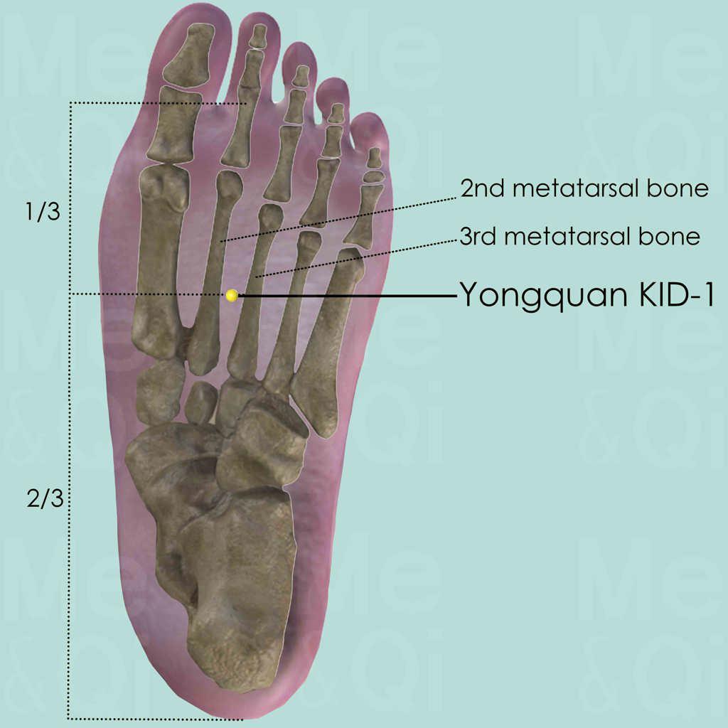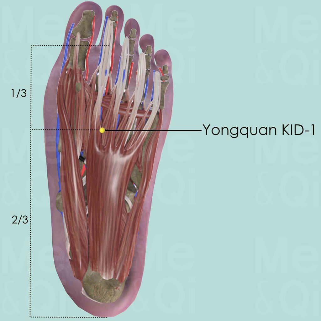 Needling of Yongquan KID-1 is very painful and is therefore only recommended for severe disorders or in an emergency. Acupressure or moxibustion is more used instead. For treating collapse, unconsciousness, shock or a severe Excess condition, this point should be strongly stimulated. Cautions should be taken in just pronounced Deficiency conditions.