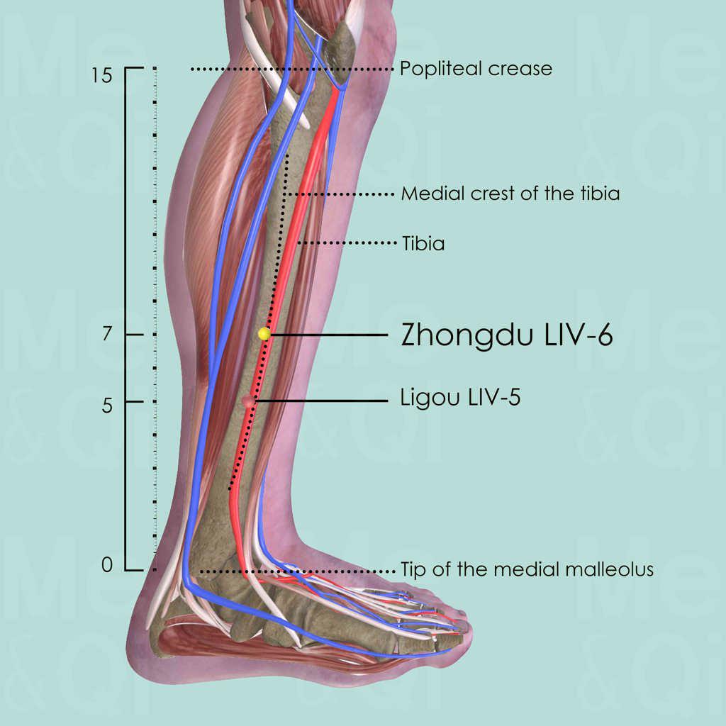 The use of LIV-6 is very similar to LIV-4 and LIV-5. It is mainly used in Excess patterns and acute cases to stop pain caused by obstruction of Liver Qi or Damp-Heat (eg: urinary pain such as cystitis).