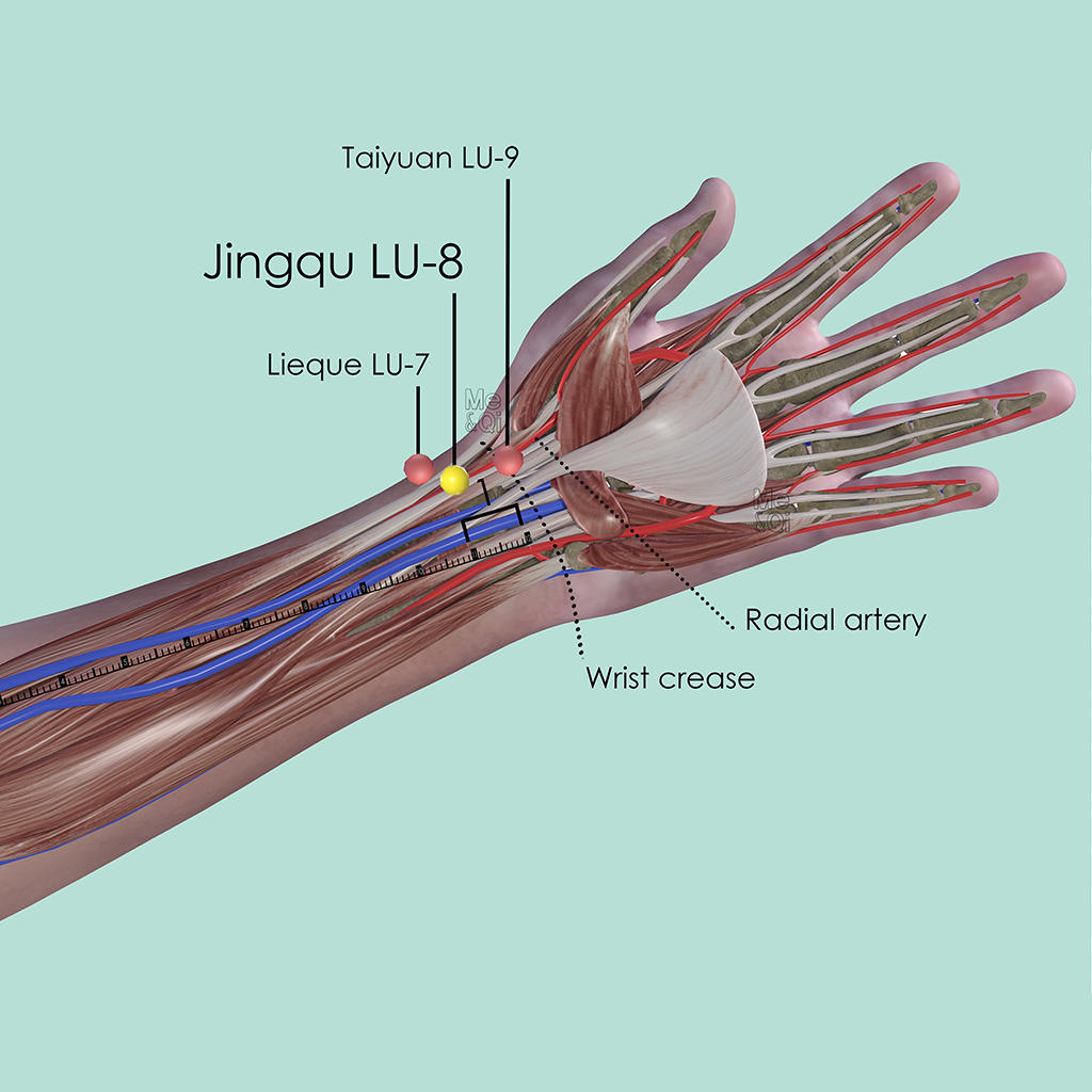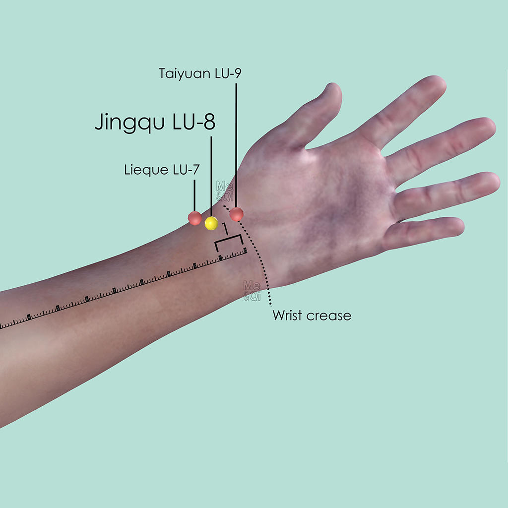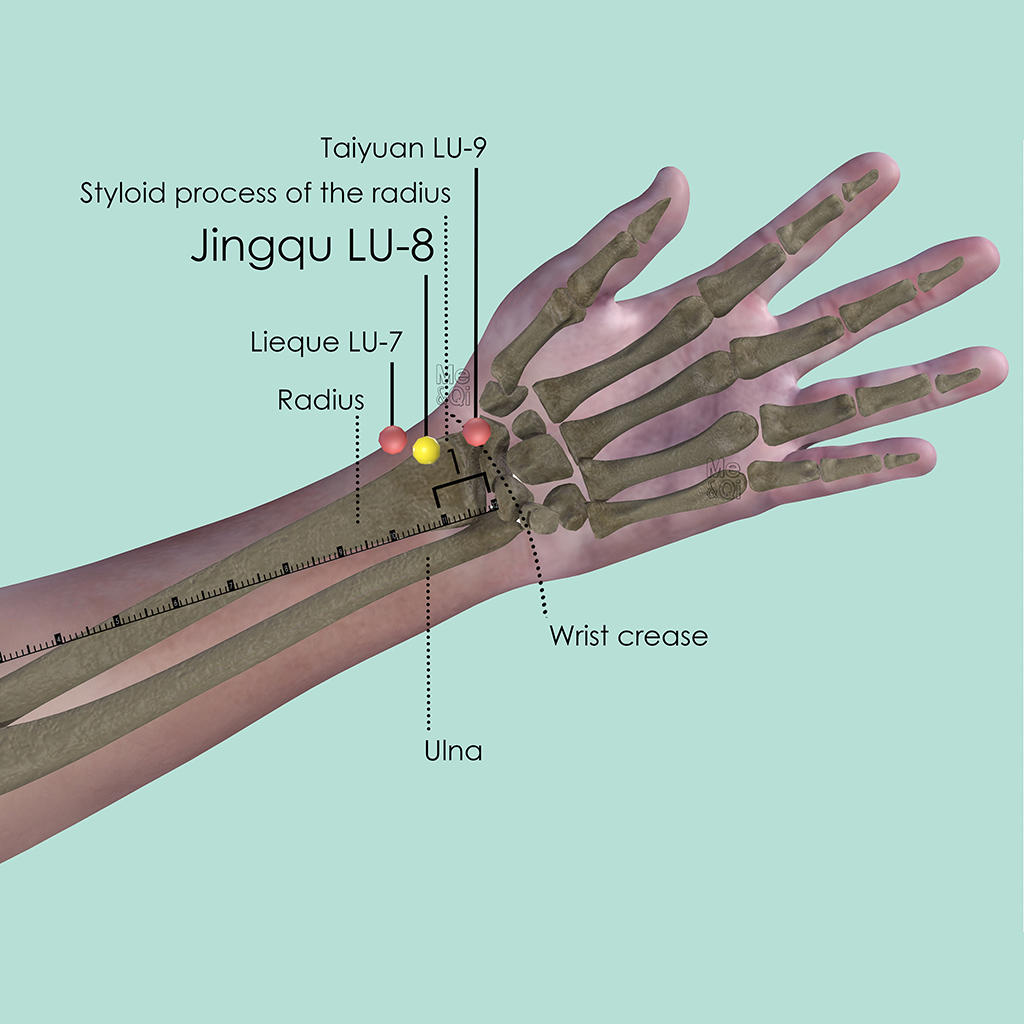 Jingqu LU-8 can be stimulated to descend the Rebellious Lung Qi, therefore it is able to treat throat and Lungs related symptoms such as cough, asthma or sore throat. It is often used in additional to other points to enhance the effect.