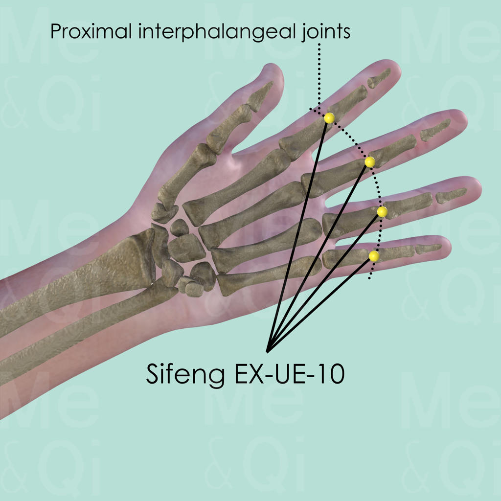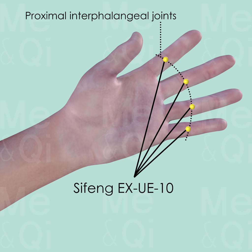 This is a group of 4 points of each hand. On the palmar side of the 2nd to the 5th fingers, at the midpoint of the transverse creases of the proximal interphalangeal joints (PIP).