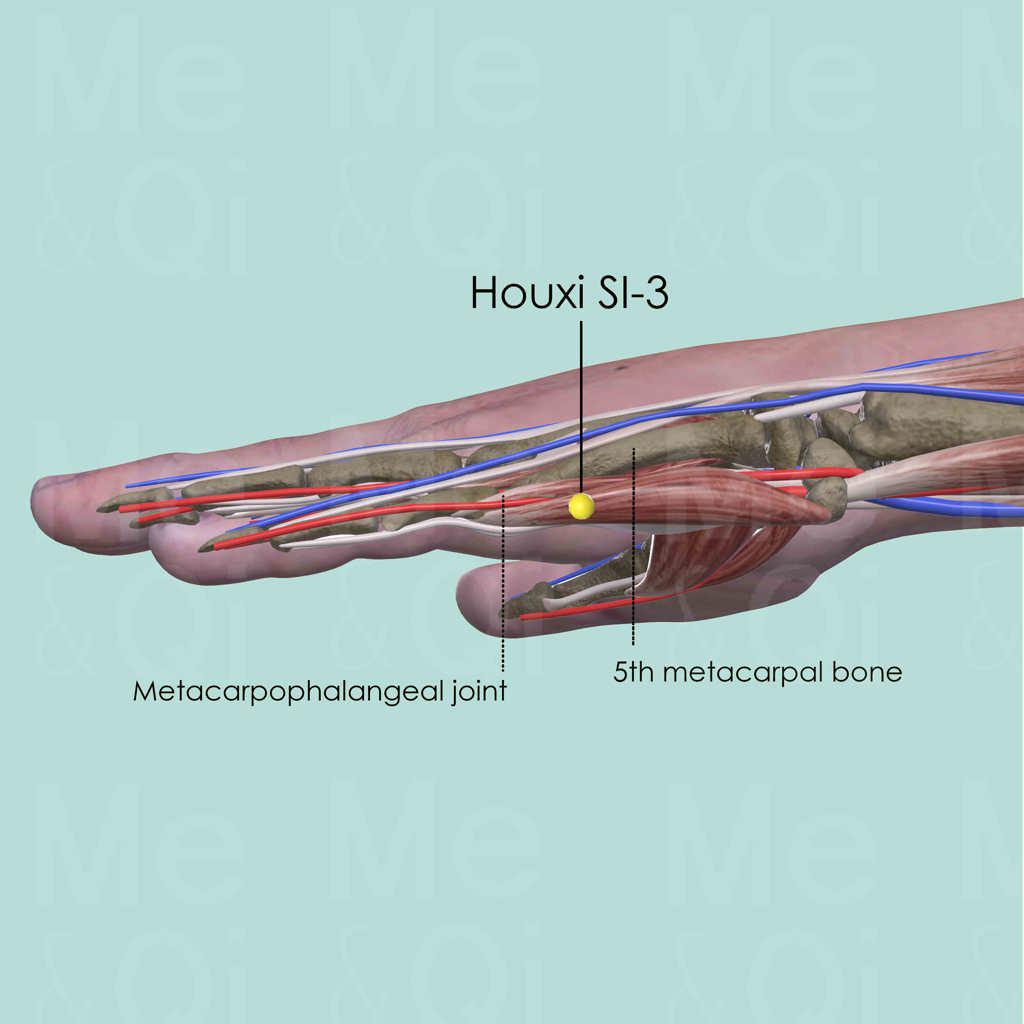Houxi SI-3 is the confluent (opening) point of the Governing Vessel and it can be stimulated for a wide range of disorders related to this Extradentary Vessel.