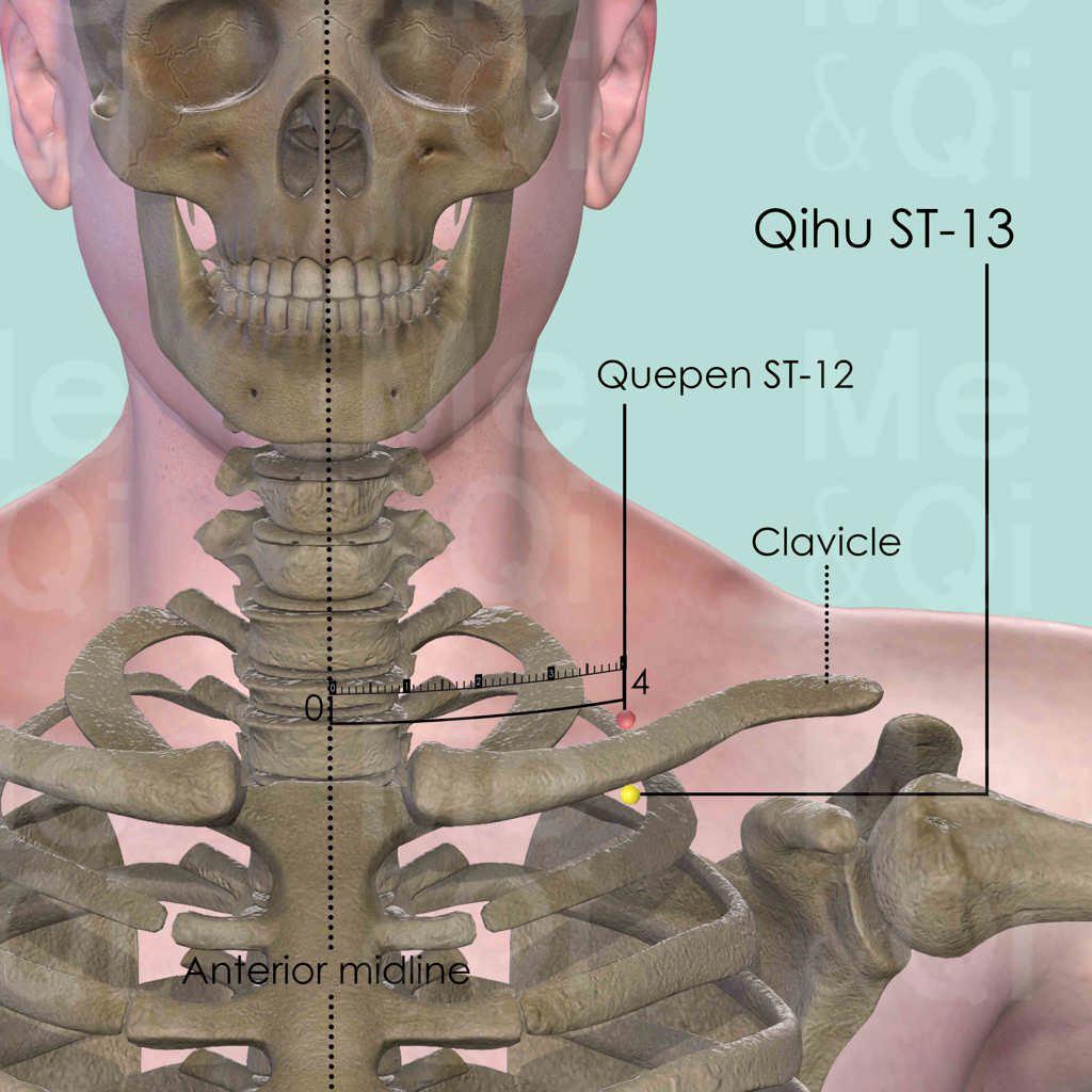 Qihu ST-13 is not a major point of the Stomach Channel. Its main function is to descend Rebellious Qi and open the chest, characterized by distention and fullness in the chest or lateral costal region.