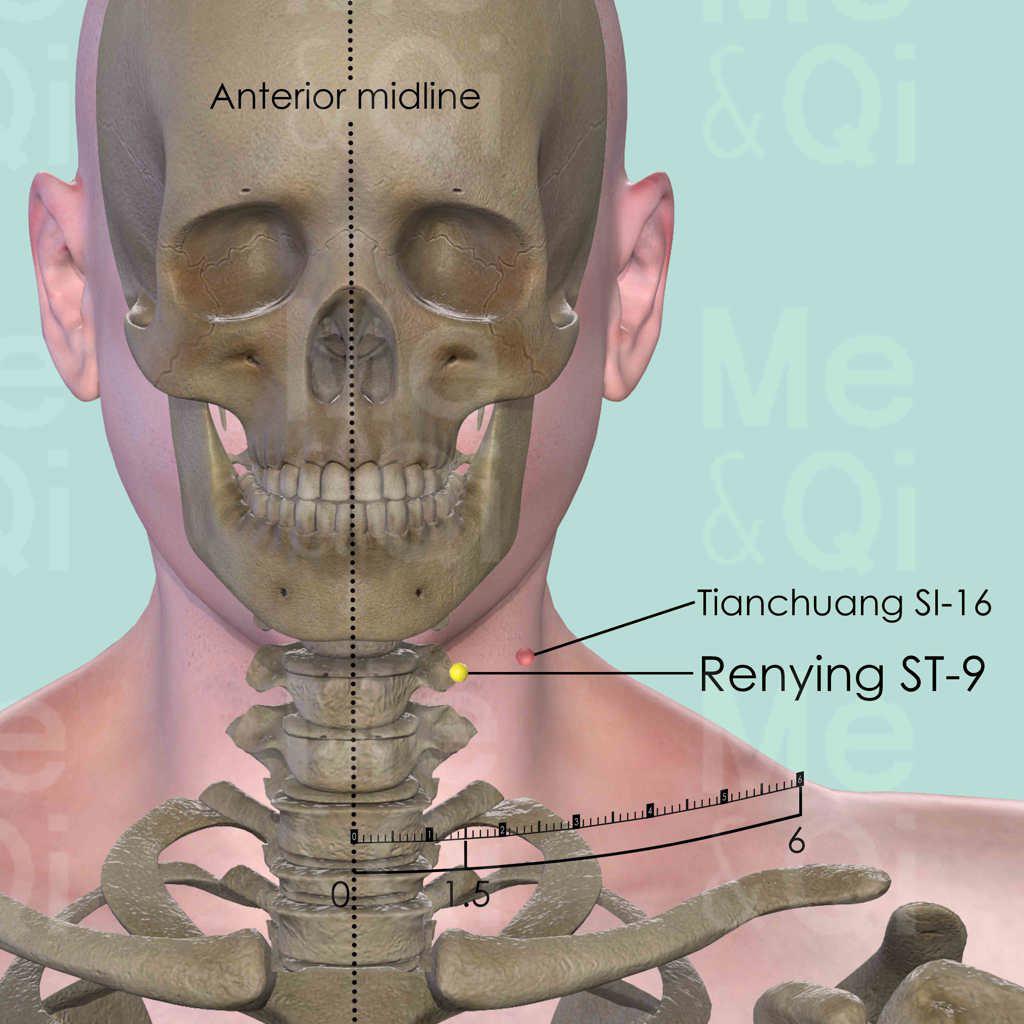 It is also the Sea of Qi point. By definition, it tonifies Qi. However, in practice, Renying ST-9 is more used to regulate Qi and restore Qi balance between different parts of the Body (eg: Qi Excess in upper part of the body and Qi Deficiency in lower part).