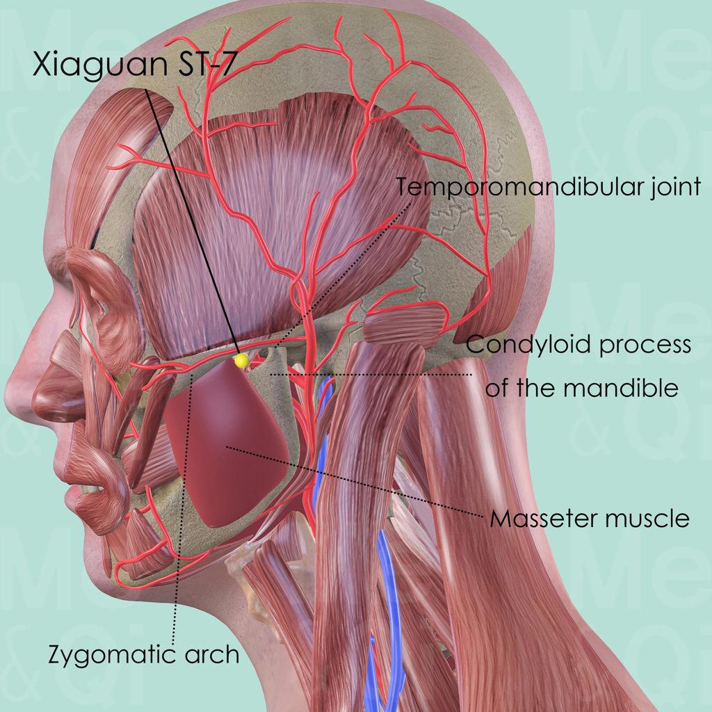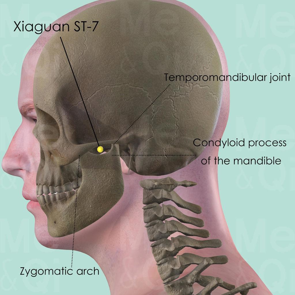 Xiaguan ST-7 is also a very important point. It is widely used to treat facial paralysis, trigeminal neuralgia and the ear disorders such as otitis, deafness and ear pain.